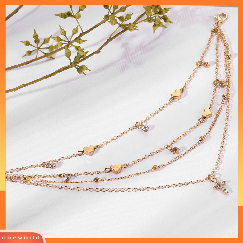 Detail [WOD] Gelang Kaki Empat Lapis All-match Wanita Bentuk Hati Ankle Bracelet Untuk Kerja