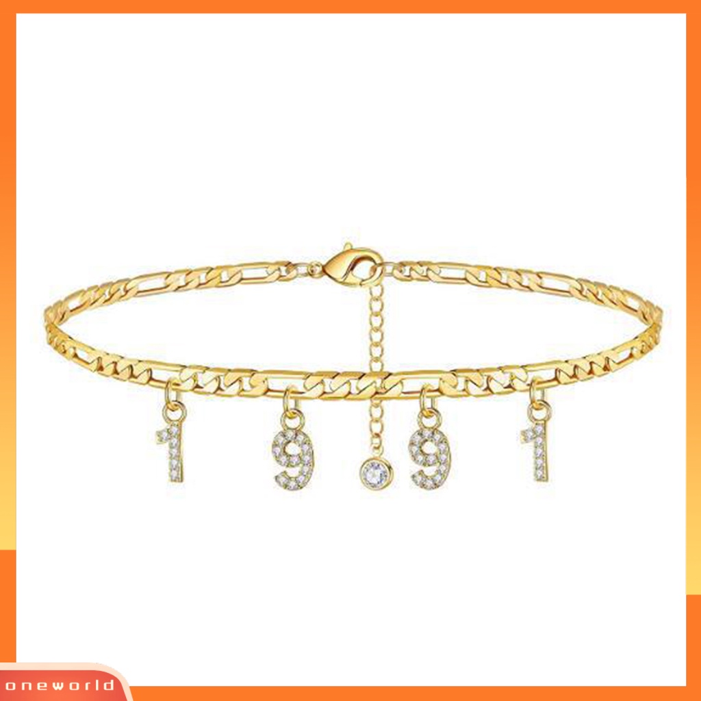 Detail [WOD] Gelang Kaki Rantai Paduan Yang Dapat Disesuaikan Perhiasan Ulang Tahun Gelang Angka Tahun 1988-1996