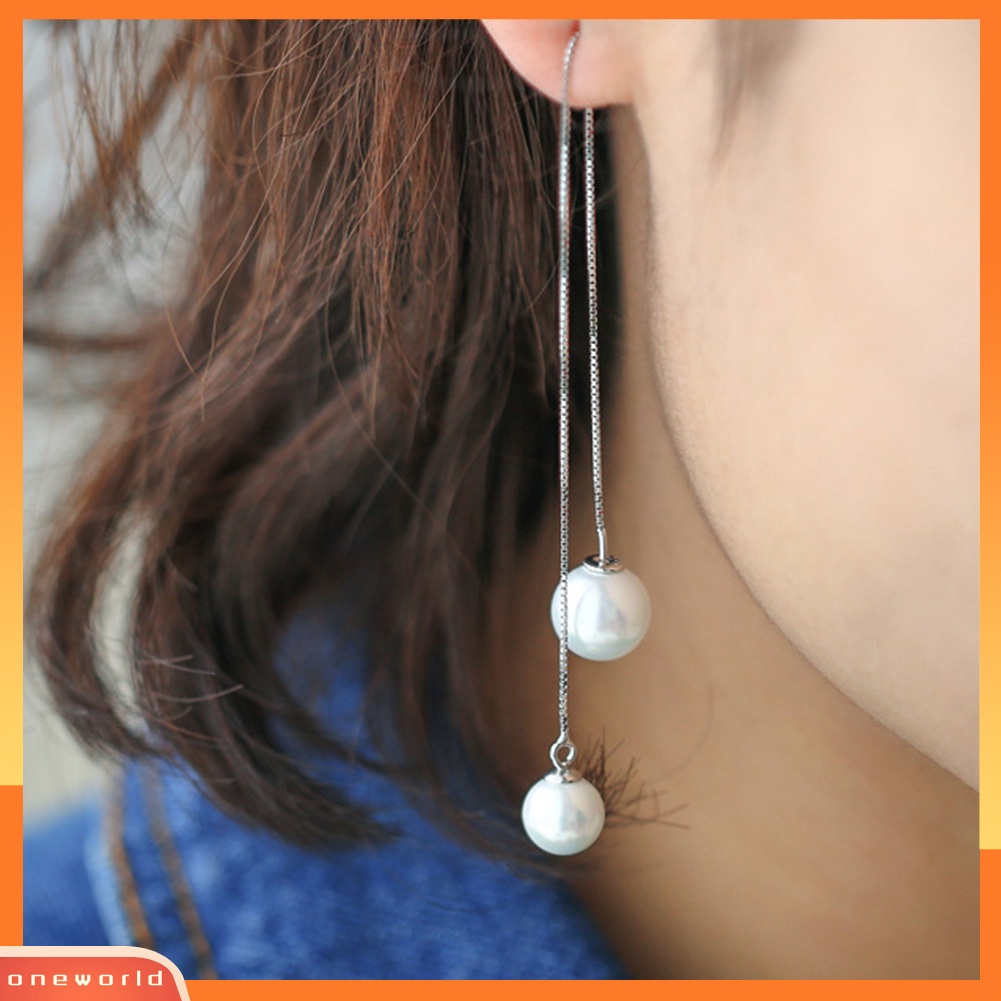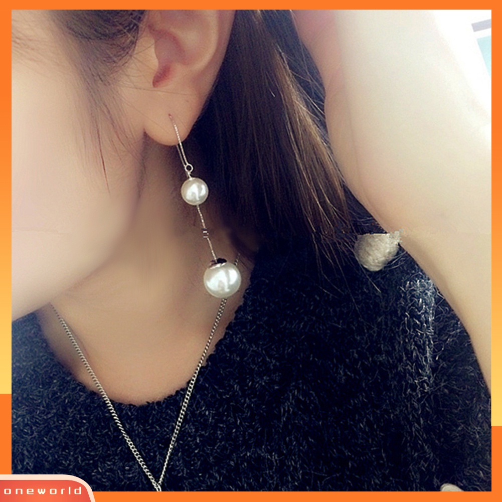 Detail [WOD] Lady Elegan Mutiara Imitasi Liontin Telinga Linear Anting Rantai Panjang Menjuntai Perhiasan