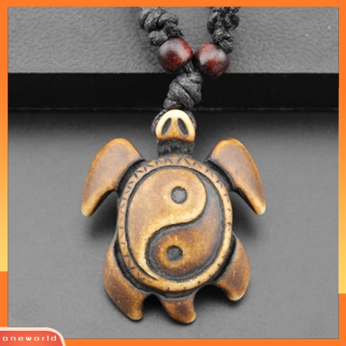 Detail [WOD] Retro Wanita Pria Faux Bone Wax Cord Yin Yang Tai Chi Turtle Pendant Kalung Hadiah