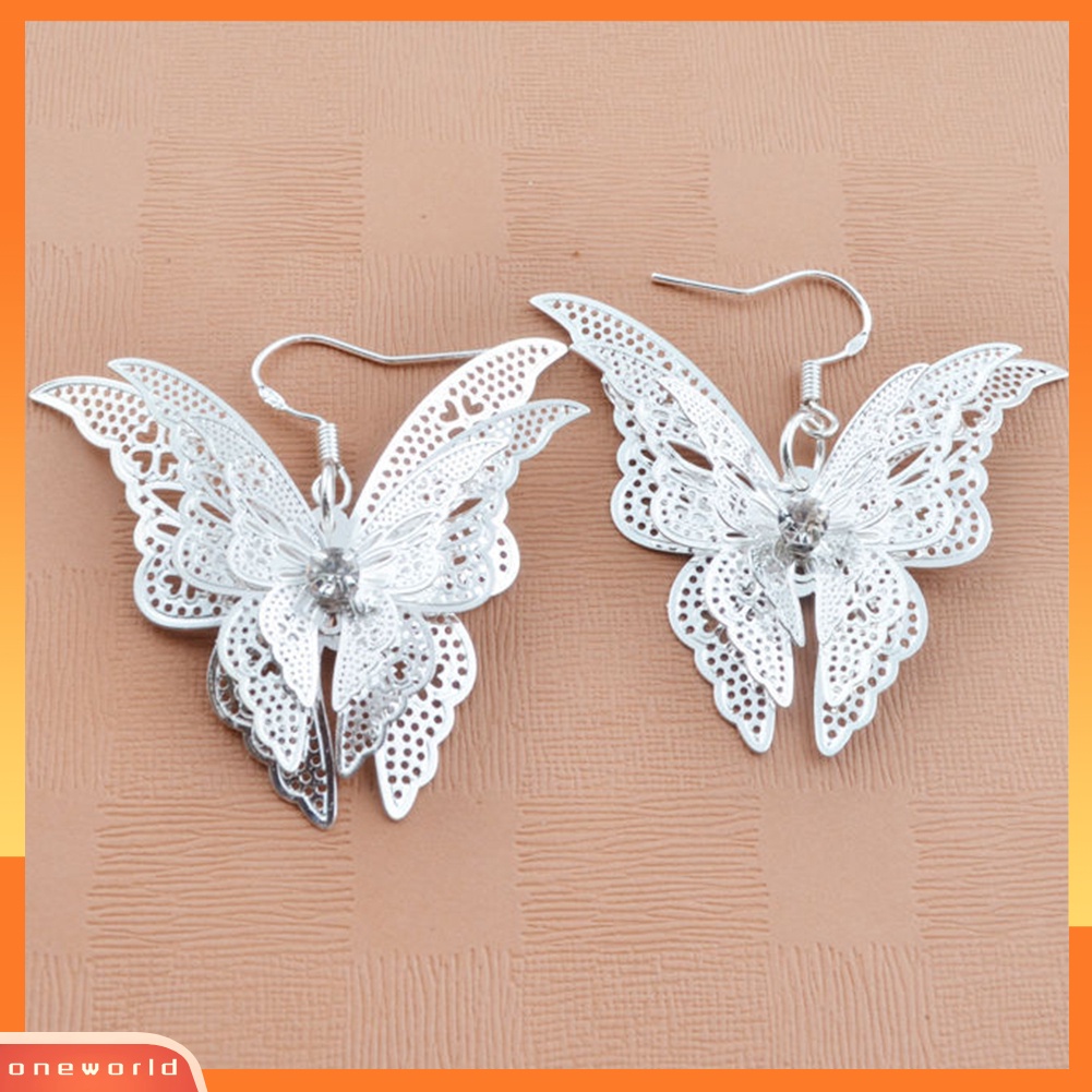 Detail [WOD] Vintage Wanita Cubic Zirconia Hias Berongga Kupu-Kupu Drop Menjuntai Kait Anting