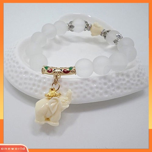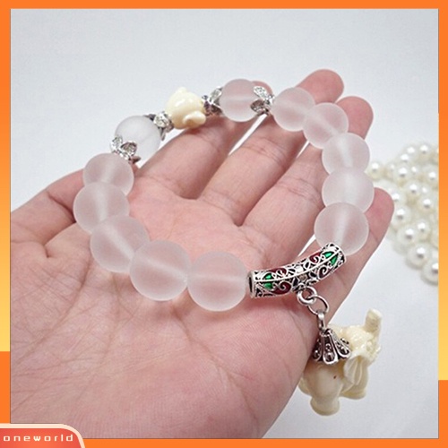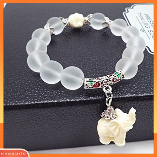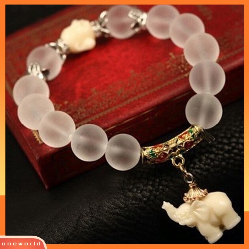 Detail [WOD] Wanita Vintage Frosted Bead Gelang Liontin Gajah Lucu Gaya Korea Bangle