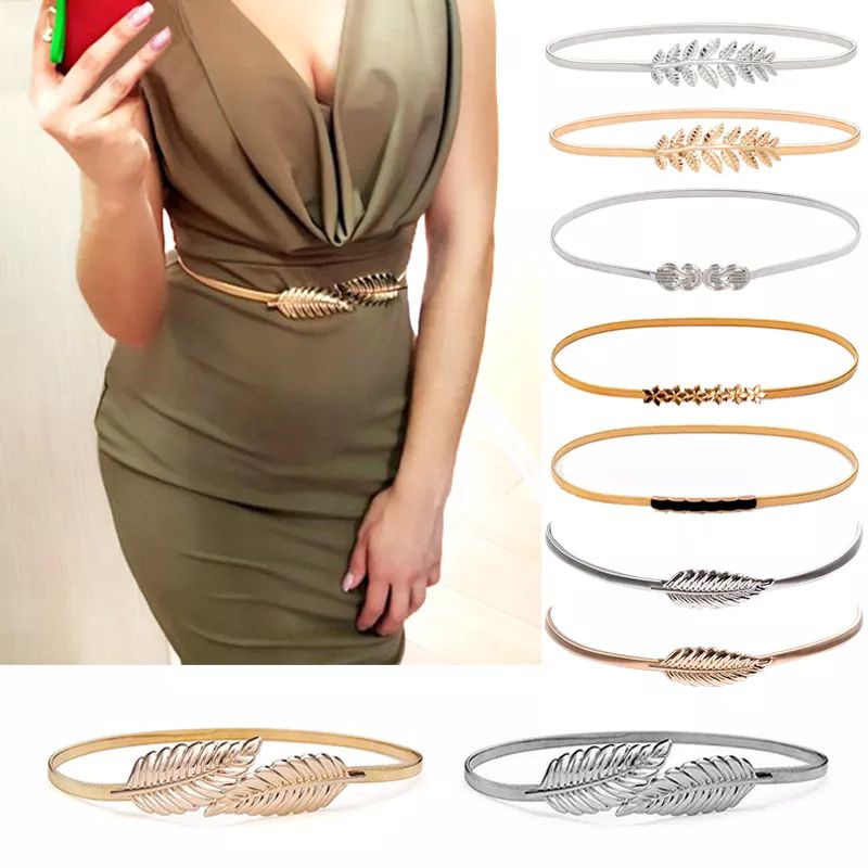 Detail women belt elastis/ikat pinggang wanita daun/gesper gamis dress pesta