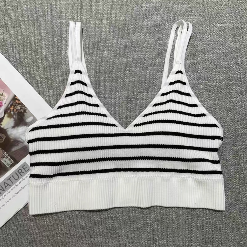 Detail Women Stripe Tank Top Bra Double Strap 2069