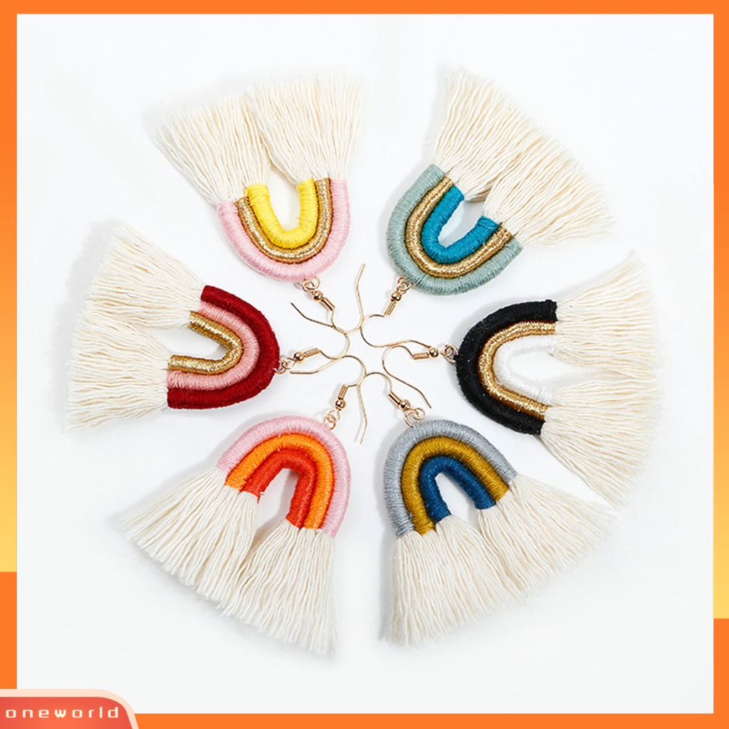 Detail [WONE] 1pasang Anting Pelangi Bohemian Menarik Hias Lapis Rumbai Rainbow Hook Menjuntai Earrings Untuk Kehidupan Sehari-Hari