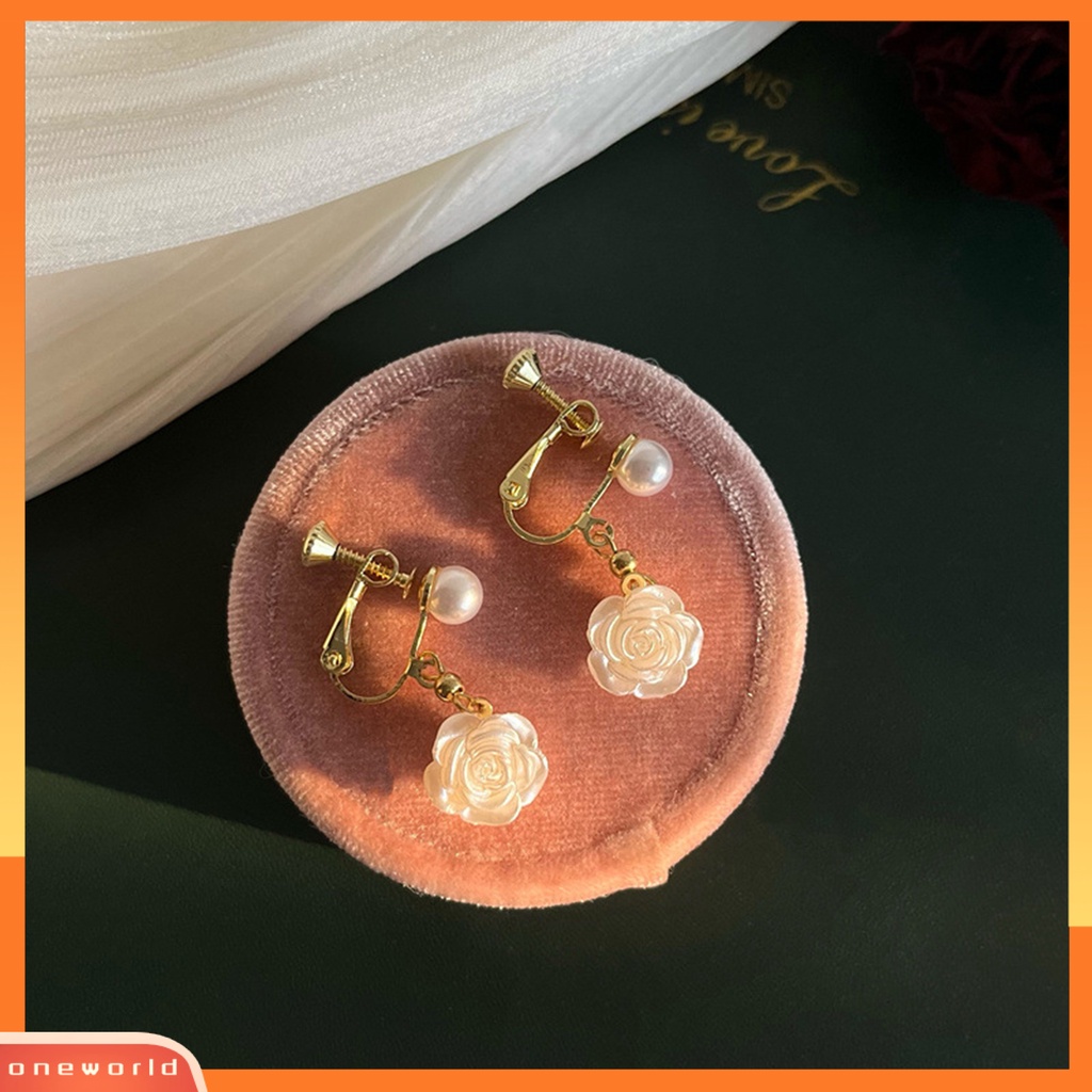 [WONE] 1pasang Anting Wanita Bentuk Camelia Desain Mutiara Imitasi Pertunjukan Pesona Unik Alloy Gaya Bunga Mini Elegan All-Match Drop Earrings Untuk Pacaran