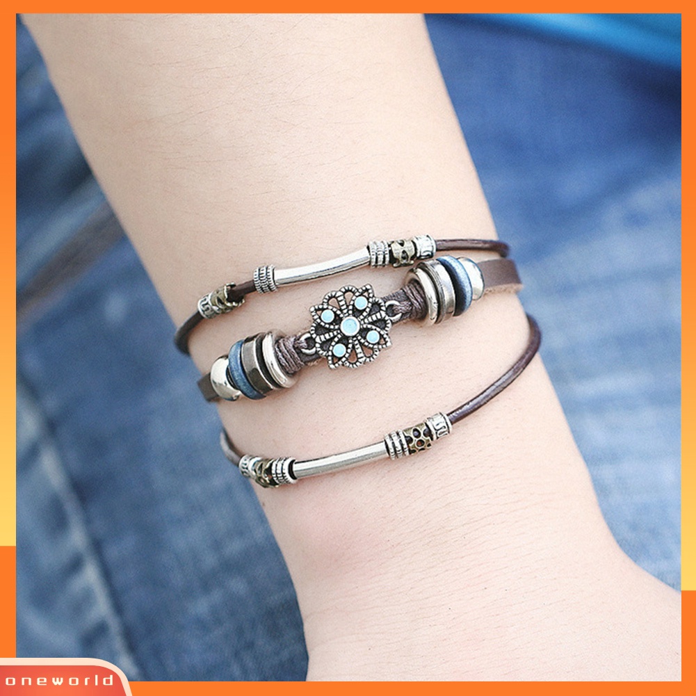 Detail [WONE] Bohemian Wanita Multi-layer Bunga Gelang Manik-Manik Kulit Imitasi Bungkus Bangle Hadiah