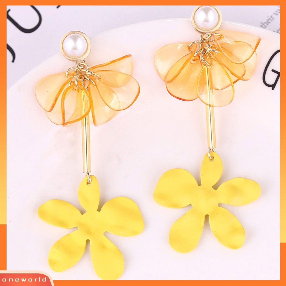 Detail [WONE] Elegan Wanita Resin Kelopak Bunga Rumbai Menjuntai Drop Hoop Earrings Perhiasan Hadiah