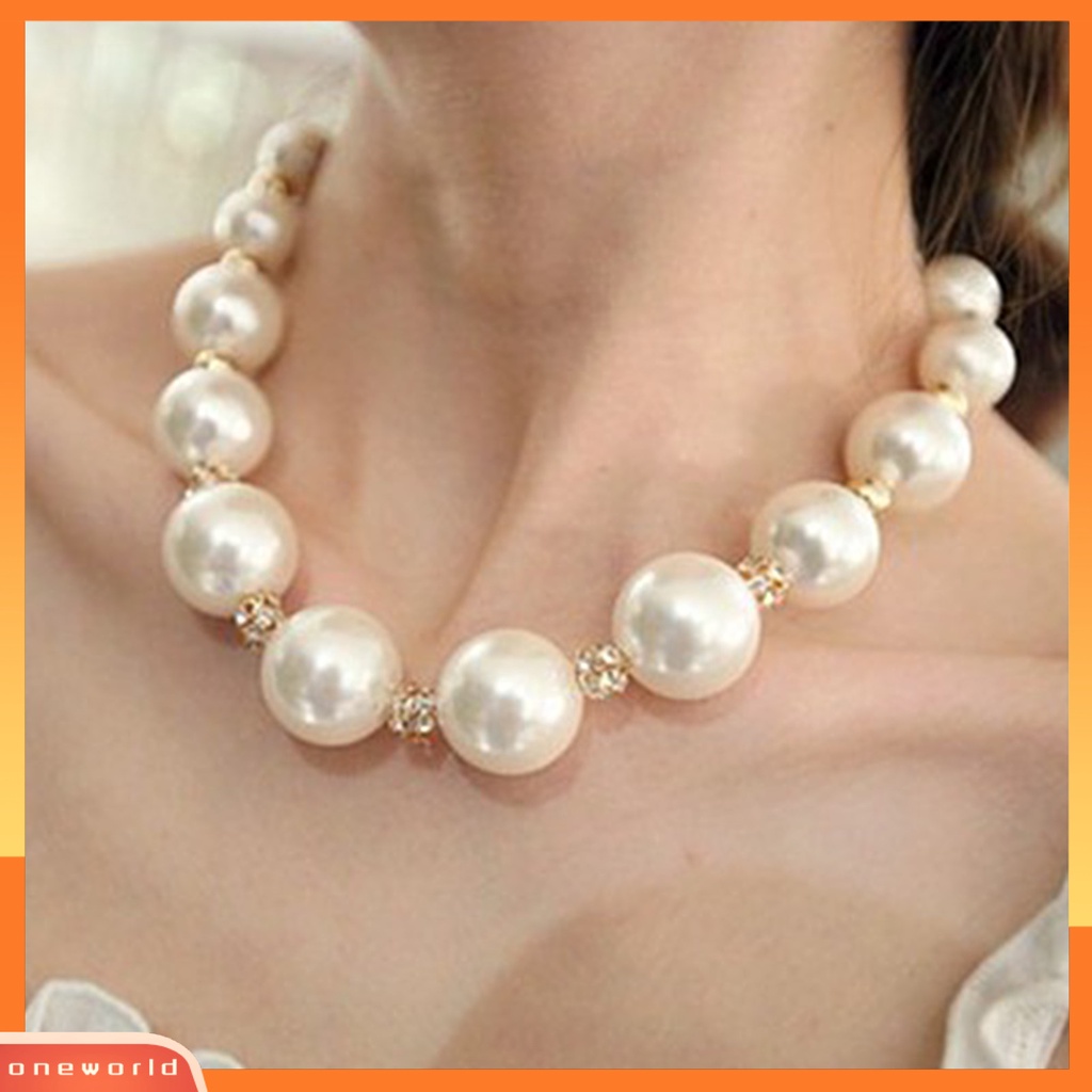Aksesoris Fashion > Kalung > Kalung Lainnya > [WONE] Kalung Wanita Berlian Imitasi Mutiara Imitasi Bahan Alloy Round Short Type Necklace Untuk Valentine Day