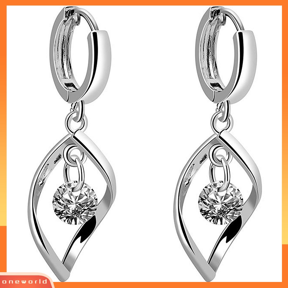 Detail [WONE] Wanita Berongga Berputar Berlian Imitasi Tetesan Air Menjuntai Huggie Earrings Perhiasan Pesta