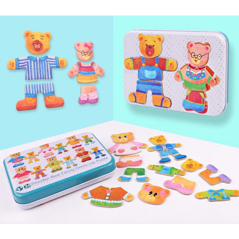 Hobi & Koleksi > Mainan & Games > Puzzle > wooden bear family dress-up magnet puzzle