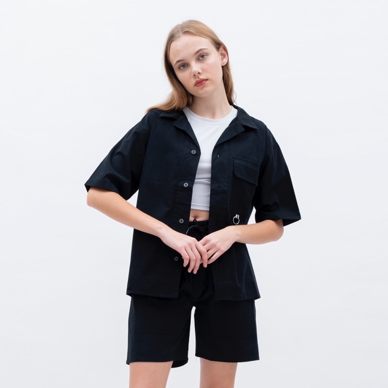 Detail world studios set shirt & short pants black unisex - stelan wanita pria kemeja & celana pendek