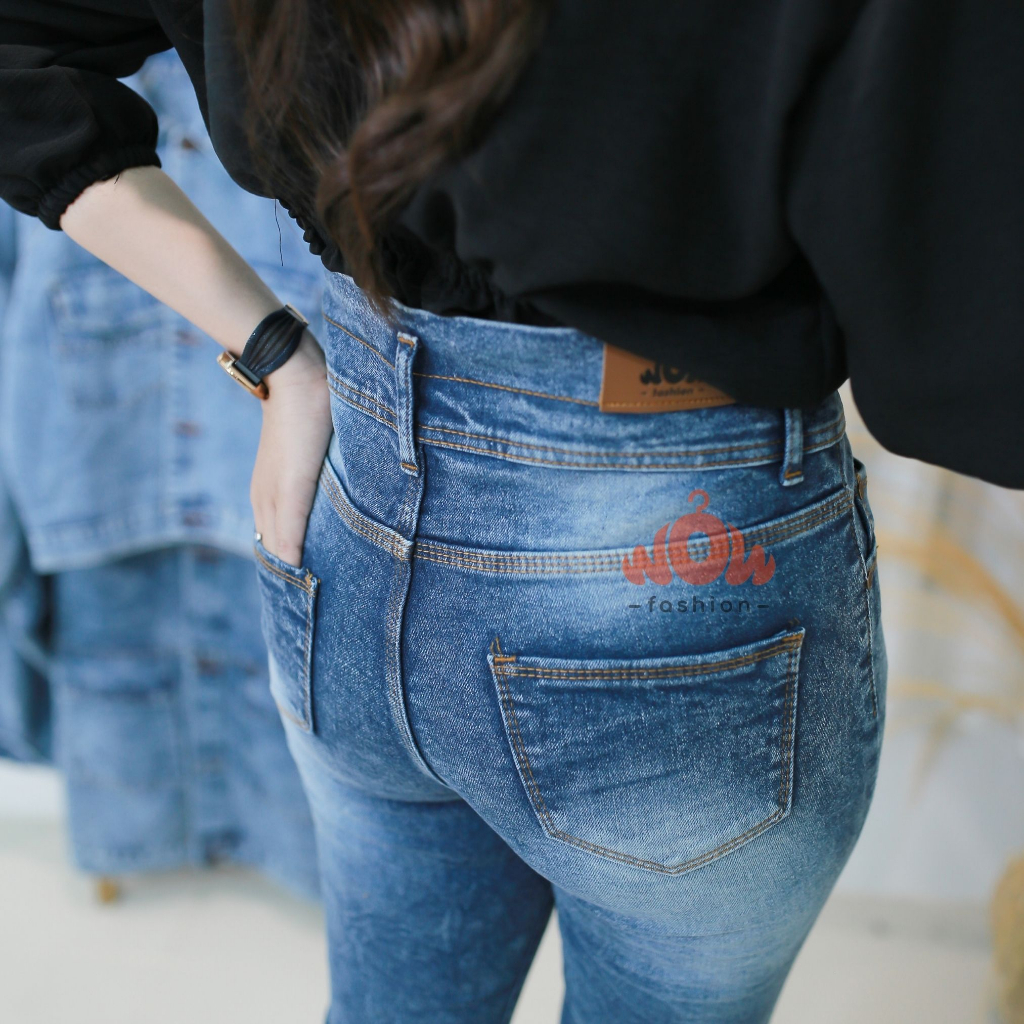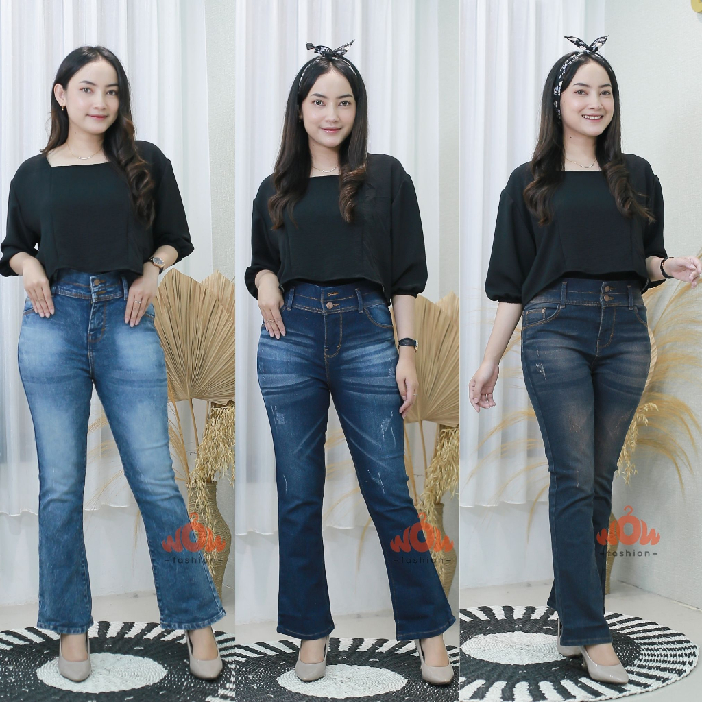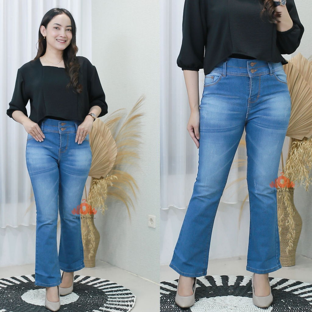 DETAIL VARIASI: -Resleting depan -Kantong depan belakang -Kancing 2 -Highwaist -Cutbray -Sobek kanan Tidak tembus