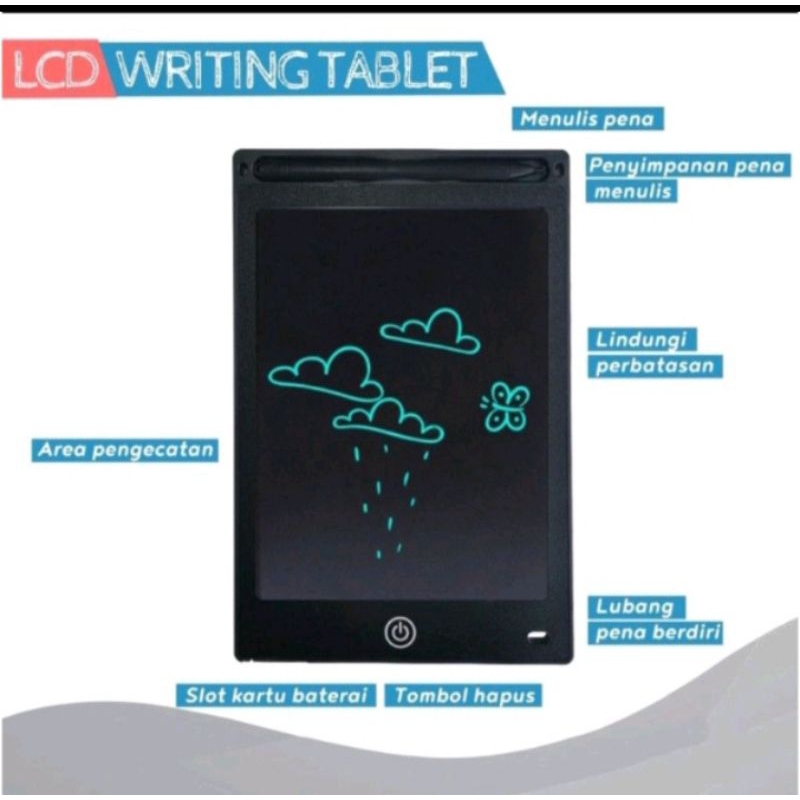 Writing Board LCD 8.5" Ipad Tab Papan Tulis Anak Digital Anti Radiasi Diperlukan 1pcs batre bulat CR2016. Disarankan untuk membeli batre cadangan lagi karena Baterai yang tersedia di produk ini tidak bergaransi.
