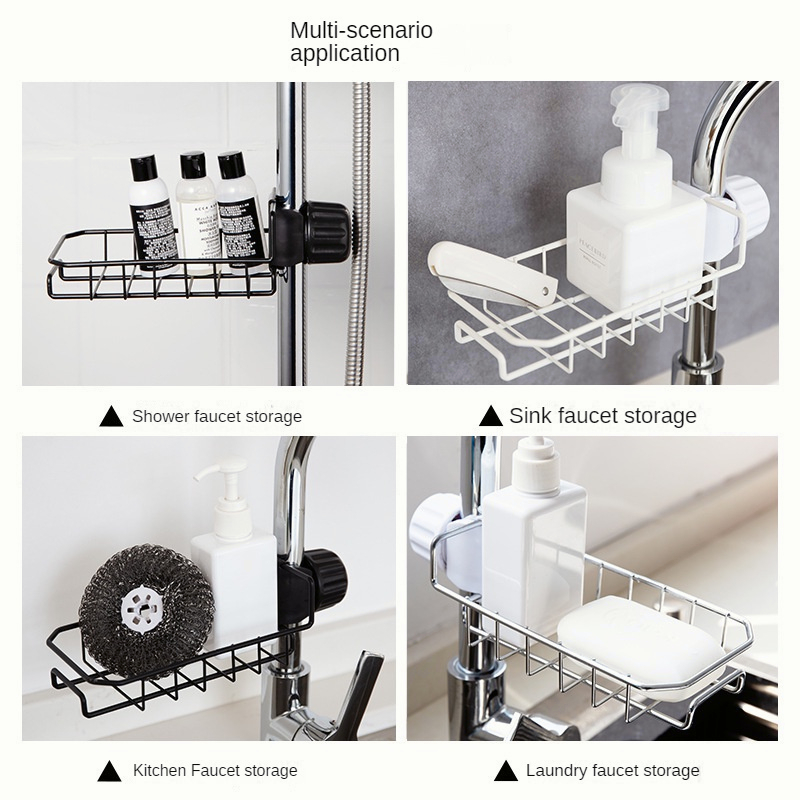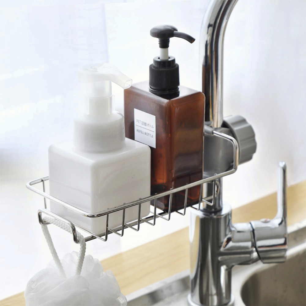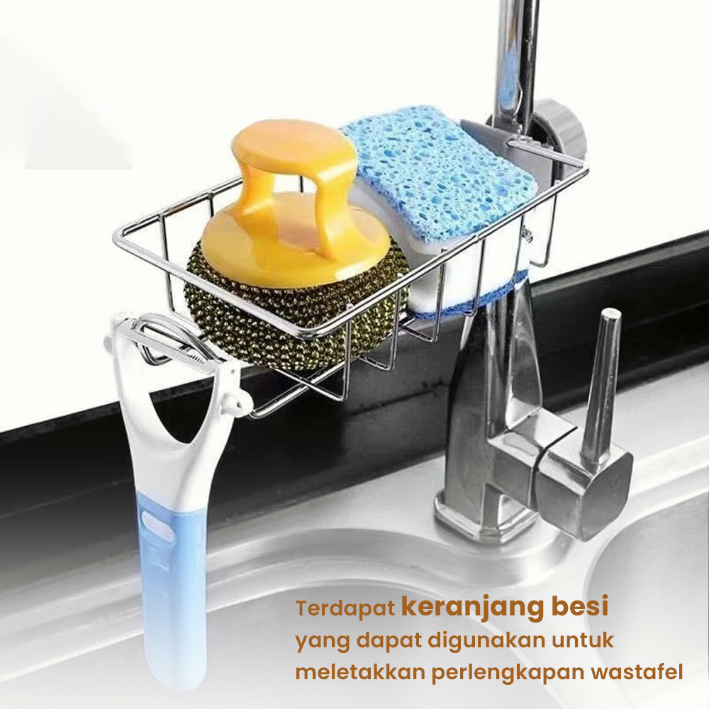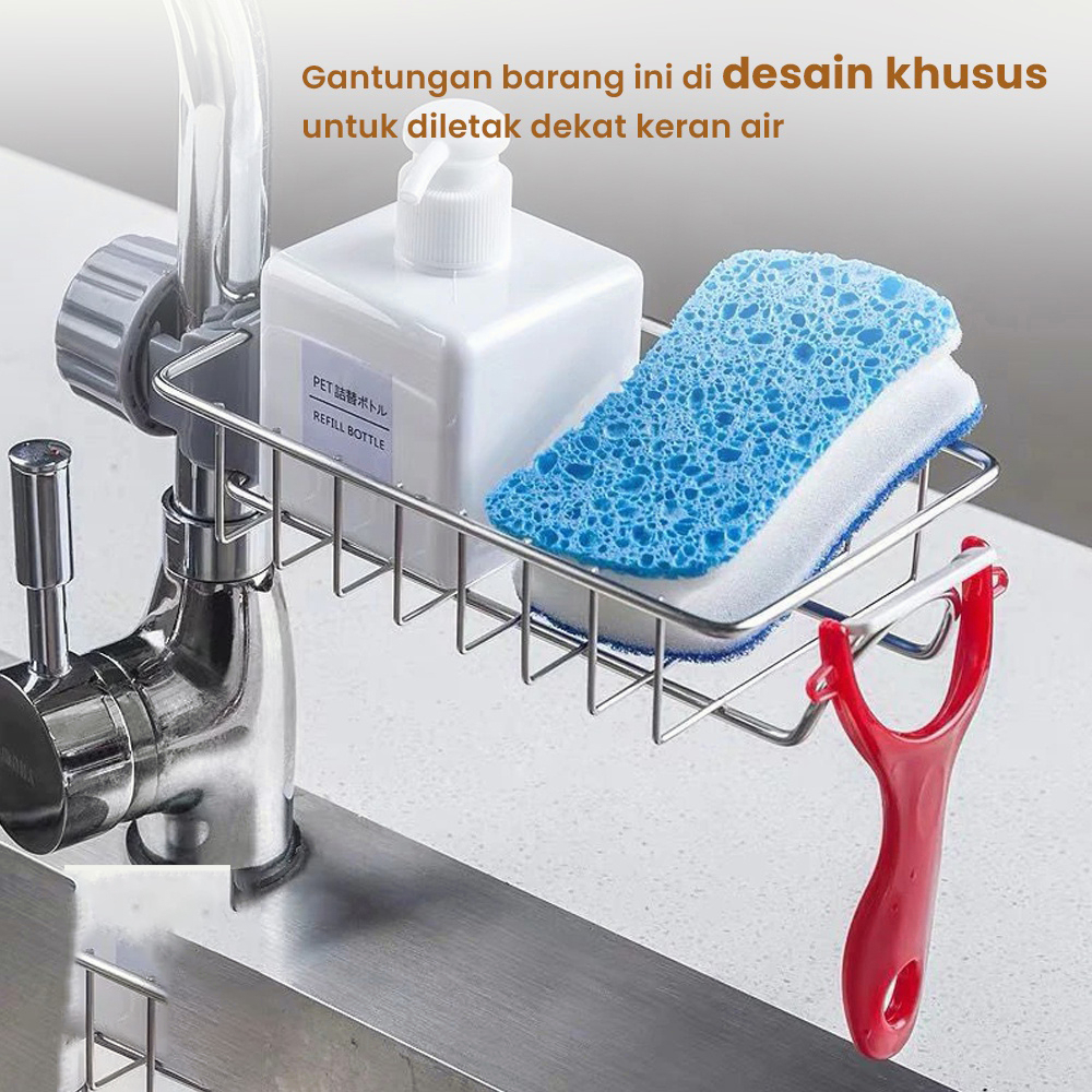 Gantungan barang ini didesain khusus untuk diletak dekat keran air. Terdapat keranjang besi yang dapat Anda gunakan untuk meletak sikat gigi, odol, cukur, sabun dan peralatan lainnya. Bahan stainless dan sekat-sekatnya membuat air tidak mengendap di keranjang dan menghindari kuman.