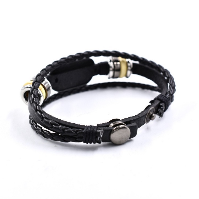 Aksesoris Fashion > Gelang Tangan & Bangle > [X C Gelang] Baru Doa Allah Gelang Hitam Kulit Vintage Hip Hop Punk Gelang Kulit Lengan Manik-Manik Multilayer Zinc Alloy Anyaman Gelang