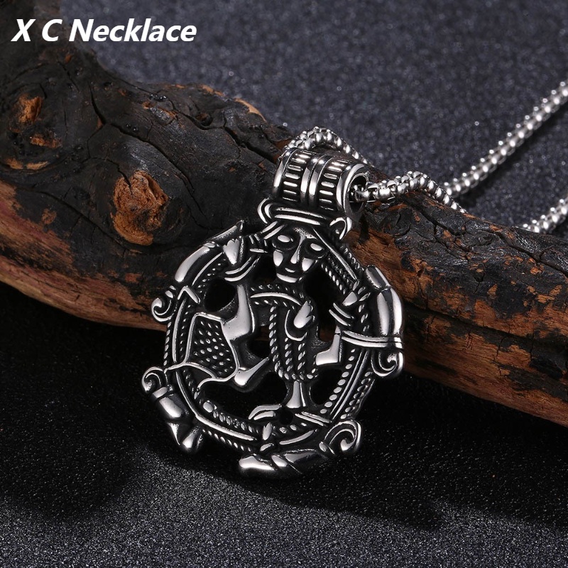 [X C Kalung] Baru Silvery Vintage Viking Bajak Laut Berongga Keluar Titanium Steel Liontin Punk Hip Hop Stainless Steel Kalung Hadiah Pesta Ulang Tahun Untuk Pria Dan Wanita