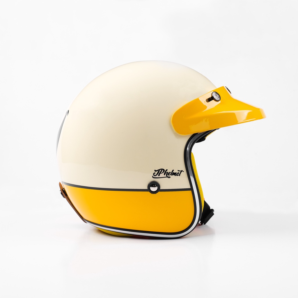 Helm retro berstandar SNI terbuat dari material dasar yang menggunakan bahan ABS, dengan microklik lock tetap, Kulit kancing belakang menggunakan kulit asli, bahan dalam sangat lembut dan nyaman untuk dipakai juga bisa di lepas pasang sehingga memudahkan saat dicuci.