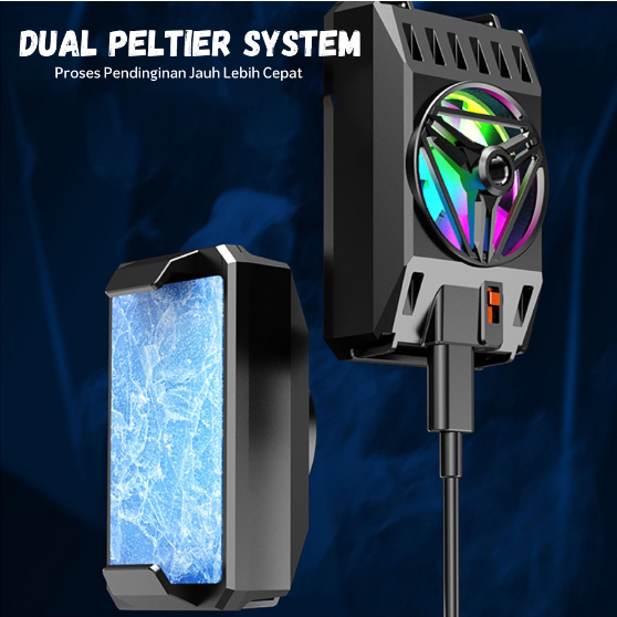 DUAL PELTIER TECHNOLOGY โ X37 sudah dilengkapi dengan DUAL PELTIER TECHNOLOGY, Sehingga Fan Cooler dapat secara SIGNIFIKAN lebih DINGIN menjaga Suhu Smartphone dari kepanasan dengan cepat! Maksimal pendingin suhu bisa sampai dengan dibawah 1โ.