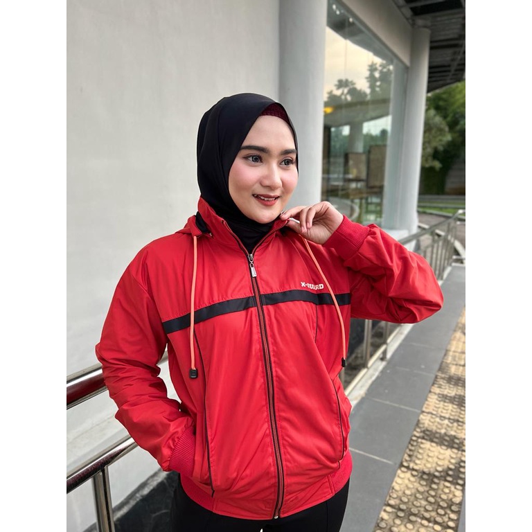 XGUARD Jaket Bomber Wanita Bahan Parasut Kombinasi Warna (X-Guard) | Gista Jaket Hoodie Wanita Terbaru Kekinian