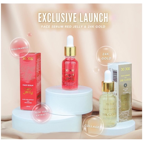 XI XIU FACE SERUM 24K GOLD. dengan Active Ingredients yaitu Gold 24K, dan Collagen, yang dapat membantu kulit wajah terlihat tampak bersinar cerah dan Collagen yang dapat membantu menyamarkan kerutan di wajah, dan menyamarkan tanda-tanda penuaan dini.