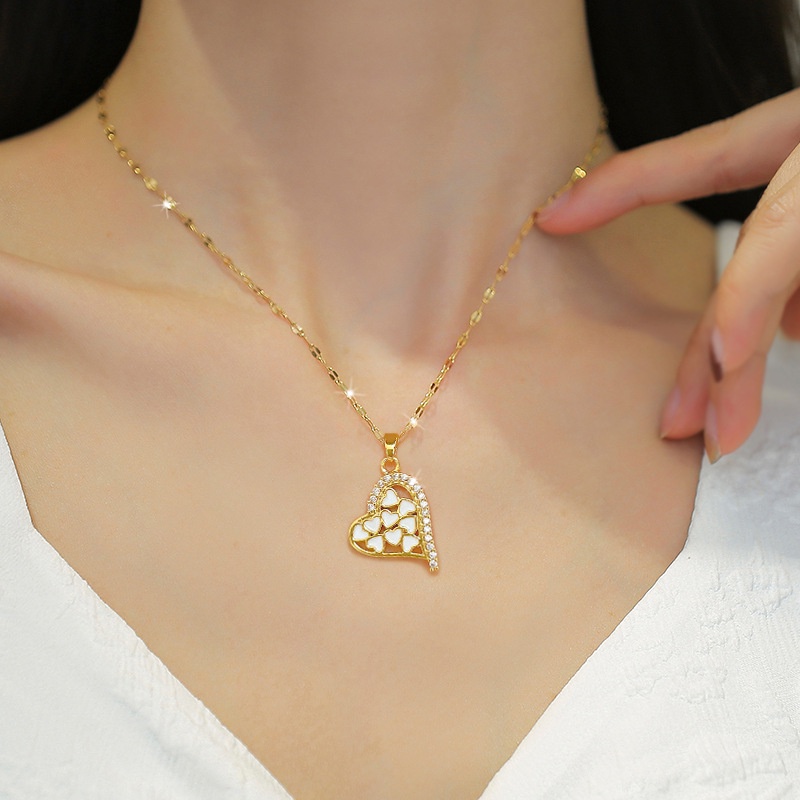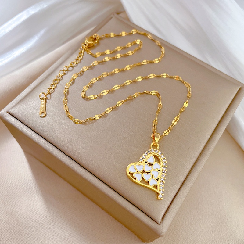 Detail Xiaoboacc Baja Titanium Wanita Fashion Tetes Minyak Diaomdn Cinta Emas Rantai Kalung