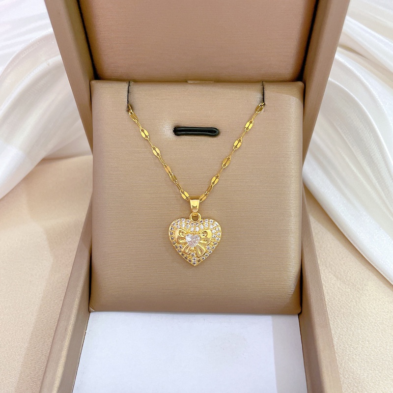Detail Xiaoboacc Kalung Cinta Berlian Baja Titanium Untuk Wanita Fashion Pesta Pernikahan Emas Choker Perhiasan