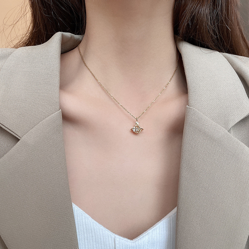 Aksesoris Fashion > Kalung > Rantai & Link > XiaoboACC Kalung Rantai Klavikula Bahan Titanium Steel Lapis Emas 18K Dengan Liontin Planet Opal Ukuran Untuk Wanita - 38CM + 6CM