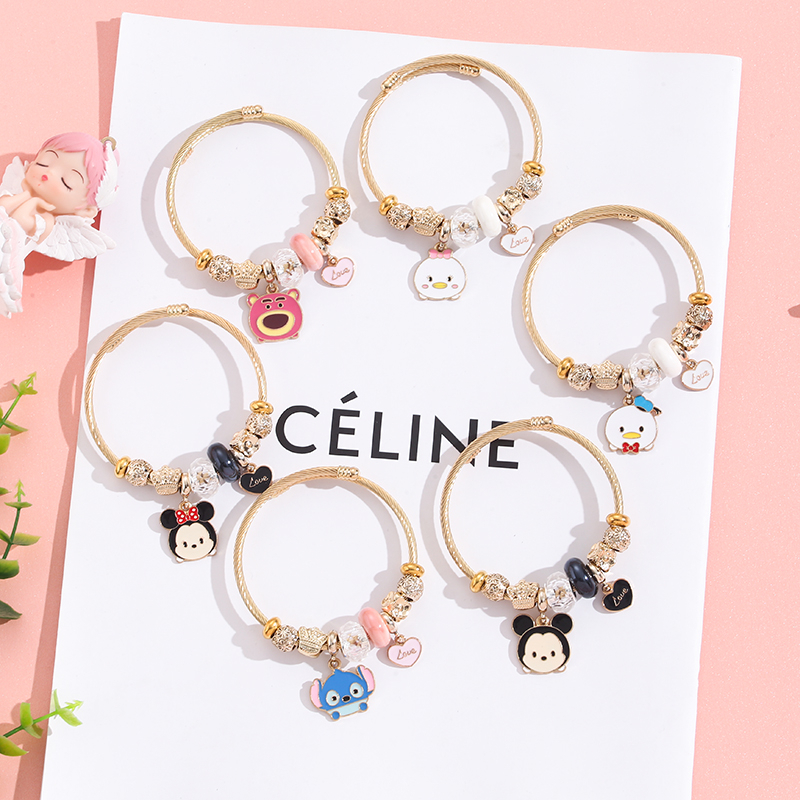 Aksesoris Fashion > Gelang Tangan & Bangle > XiaoboACC Kartun Stitch Mickey Minnie Liontin Stainless Steel Terbuka Dapat Disesuaikan DIY Gelang