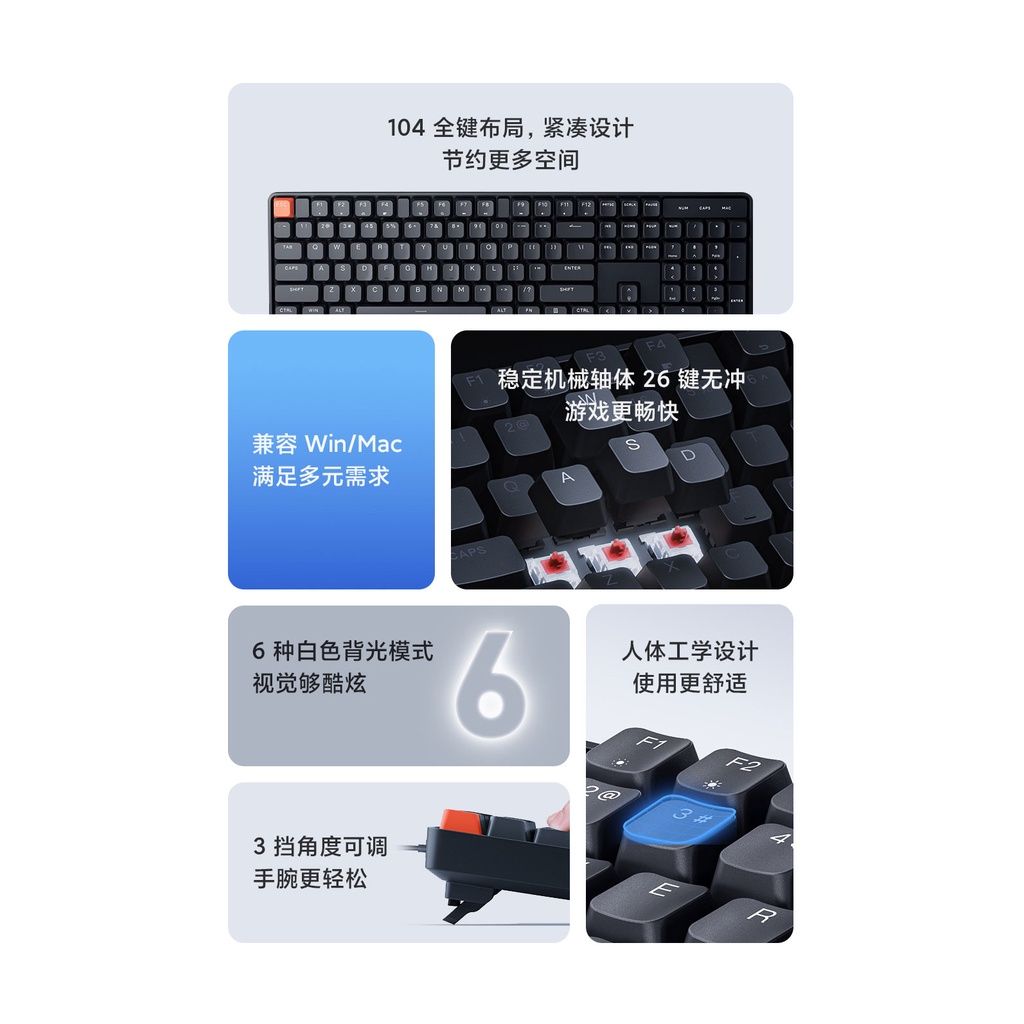 Detail Xiaomi Keyboard Gaming Mekanik Kabel Usb 104 Tombol Desain Ergonomis Dengan Lampu Backlight LED