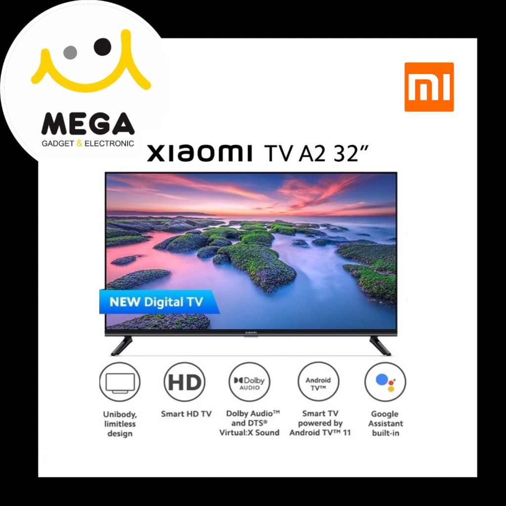 Xiaomi TV A2 32" memiliki desain layar penuh. Desain bezel ultra-tipis menghadirkan rasio antara layar dan bodi yang jauh lebih baik dibandingkan TV standar. Ketika layar dinyalakan, Anda hampir tidak merasakan adanya garis di sisi gambar sehingga bisa menikmati pengalaman visual yang lebih imersif. Xiaomi TV A2 32" memiliki kualitas luar biasa. Dengan desain bingkai metalik yang keren dan menyatu, Xiaomi TV A2 Series semakin menambah kesan serasi dengan setiap ruangan rumah. Xiaomi TV A2 32" dilengkapi dengan 2 speaker stereo 10W yang bertenaga mampu menghadirkan suara bass yang kaya ke setiap sudut ruangan dan pengalaman mendengarkan audio yang imersif. Teknologi dual decoding Dolby Audioâ„¢ + DTS-X dapat menghasilkan efek suara yang jernih untuk pengalaman mendengarkan audio yang lebih imersif*. Selain itu, teknologi DTS Virtual:X yang canggih dapat menghasilkan suara tiga dimensi dengan dimensi di atas ketinggian kepala untuk pengalaman mendengarkan audio seperti di bioskop. Xiaomi TV A2 32" merupakan Android TVâ„¢, cara mudah menikmati hiburan favorit Anda. Permudah pengalaman Anda menikmati hiburan dengan Android TVâ„¢. Akses lebih dari 400.000 film dan acara TV, serta unduh 5.000 lebih aplikasi dari satu tempat. Unduh Xiaomi TV+* dan akses berbagai macam koleksi saluran live premium dengan konten berita, film, hiburan, reality show, dan lainnya. Tonton gratis kapan saja, di mana saja. Tidak perlu berlangganan. Xiaomi TV A2 32" dilengkapi dengan Google Assistant. Tekan tombol Google Assistant di remote Anda untuk melakukan lebih banyak hal di TV dengan suara. Minta Google untuk mengontrol TV Anda, menjawab pertanyaan, dan melihat kalender Anda. Anda bahkan dapat mengontrol perangkat pintar lain di rumah Anda dari smart TV Anda. Masa depan kini telah hadir.