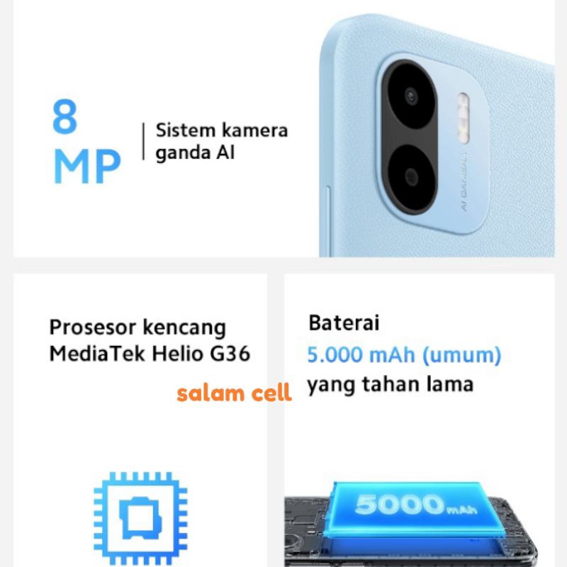 Detail Xiaomi Redmi A2 Ram 3/64GB Baterai 5.000MaH Garansi Resmi TAM