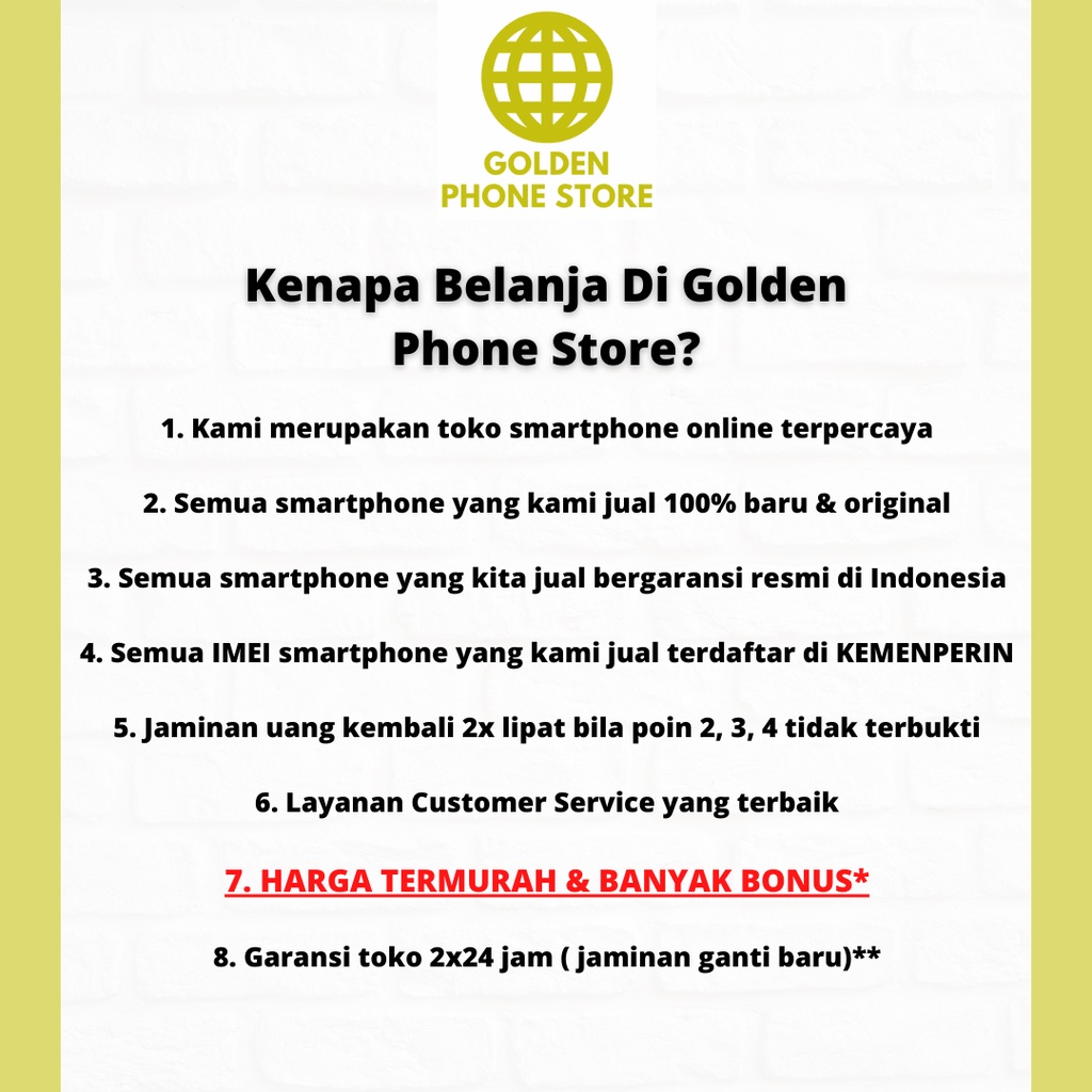 Seluruh produk Golden Phone Store 100% ORI, bergaransi resmi di Indonesia dan IMEI resmi yang terdaftar di IMEI KEMENPERIN