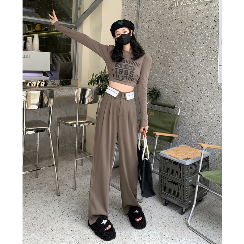 Detail XIAOZHAINV Celana Wanita Korean Style Highwaist Straight 0734/Celana Kantor Formal