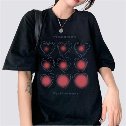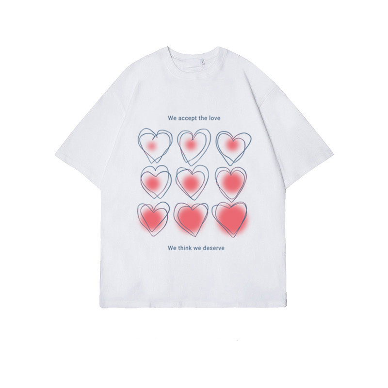 Detail XiaoZhaiNv Kaos Atasan Oversize Wanita Red Heart Pattern Lengan Pendek A0151