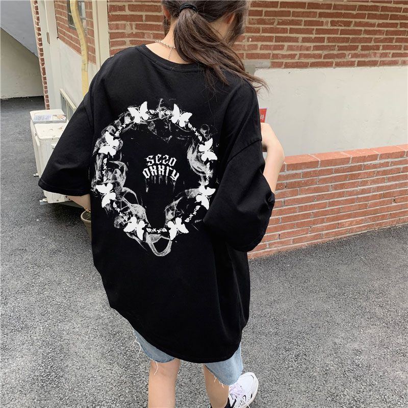 Detail XiaoZhaiNv Kaos Atasan Oversize Wanita White Butterfly Pattern Lengan Pendek A0500