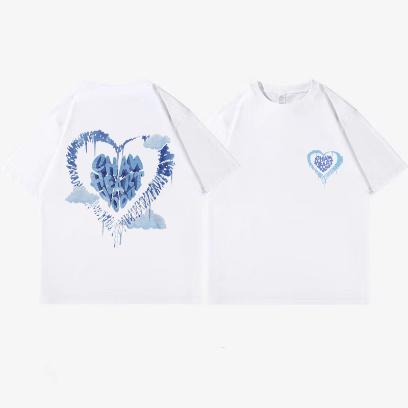 Detail XiaoZhaiNv Kaos Atasan Oversize Wanita Blue Heart Pattern Lengan Pendek A0665
