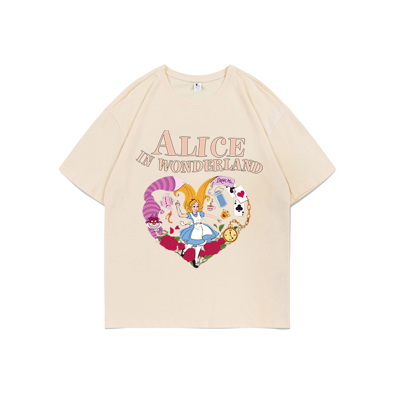 Detail XiaoZhaiNv Kaos Atasan Oversize Wanita Alice in Wonderland Pattern Lengan Pendek A0940