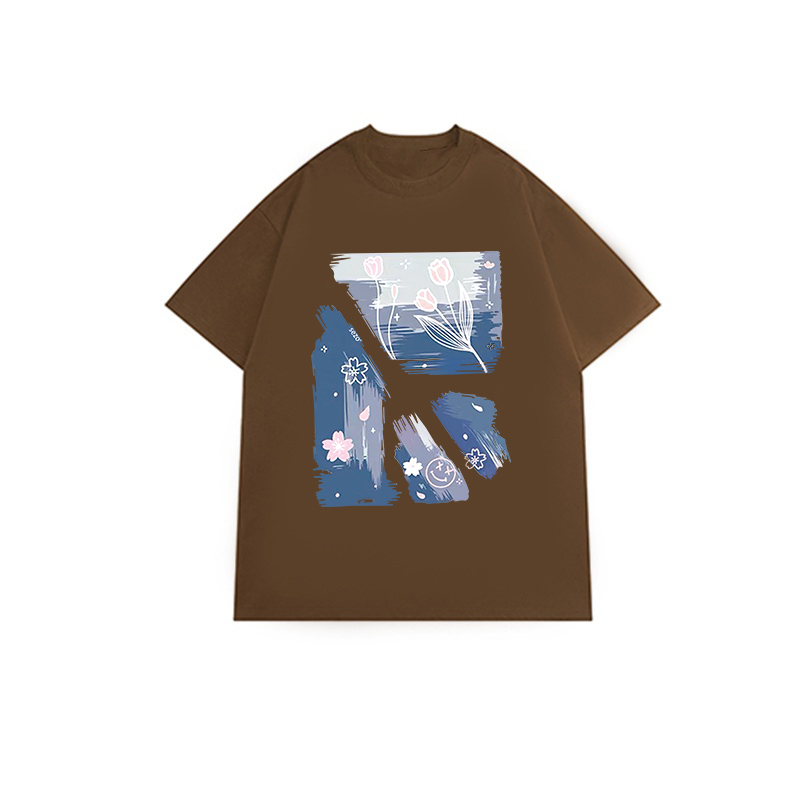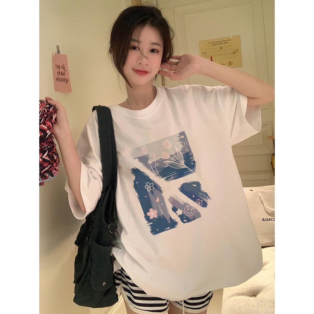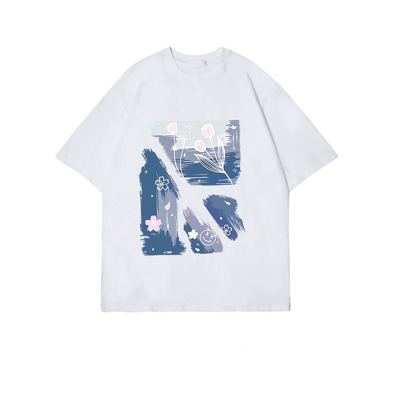 Detail XIAOZHAINV Kaos Atasan Oversize Wanita Blue Scenery Pattern Lengan Pendek A0228