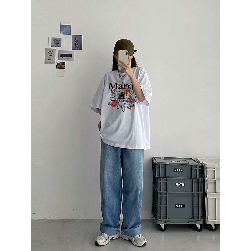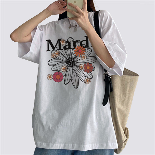 Detail XiaoZhaiNv Kaos Atasan Oversize Wanita Little Daisy Pattern Lengan Pendek A0938