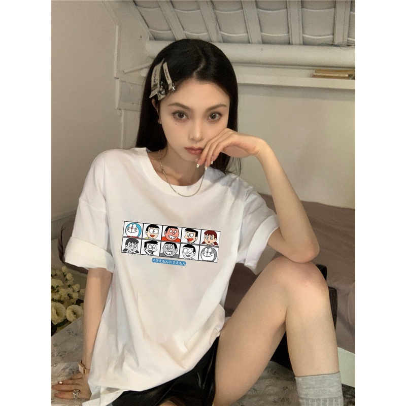 Detail XIAOZHAINV Kaos Atasan Wanita Doraemon Pattern Lengan Pendek A0551