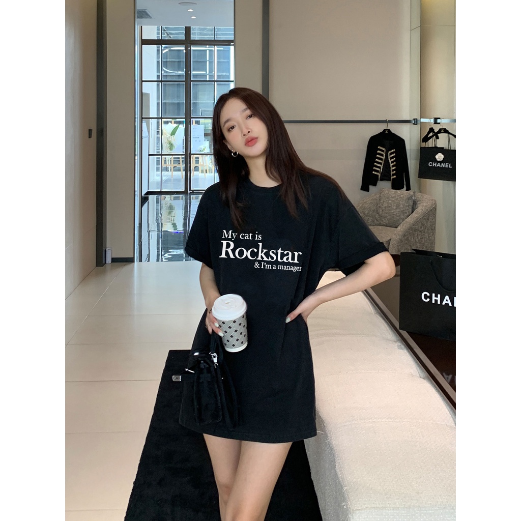Detail XIAOZHAINV Kaos Atasan Wanita My Cat Is Rockstar Pattern Lengan Pendek A0904