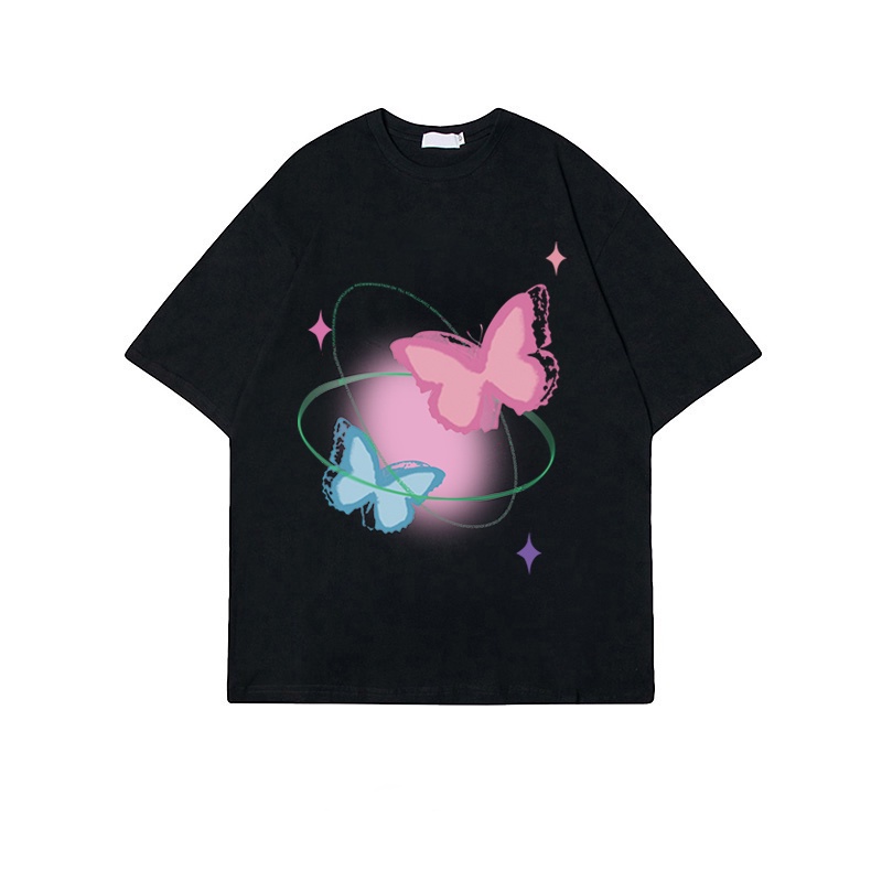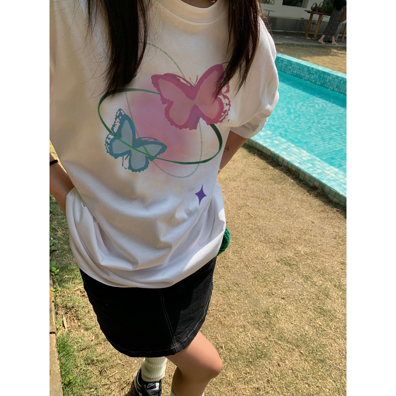 Detail XIAOZHAINV Kaos Atasan Wanita Butterfly Pattern Lengan Pendek A0546