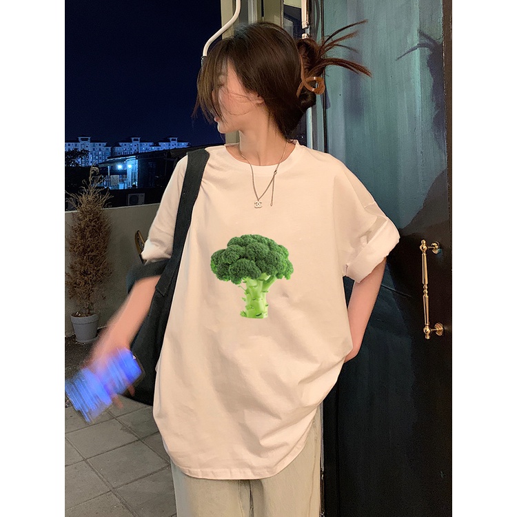 Detail XIAOZHAINV Kaos Atasan Wanita Brocol Pattern Lengan Pendek A0289