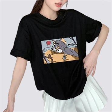 Detail XIAOZHAINV Kaos Atasan Wanita Tom and Jerry Pattern Lengan Pendek A0331