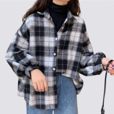 Detail XIAOZHAINV Kemeja Kotak-Kotak Korean Style Lengan Panjang Wanita HW0033