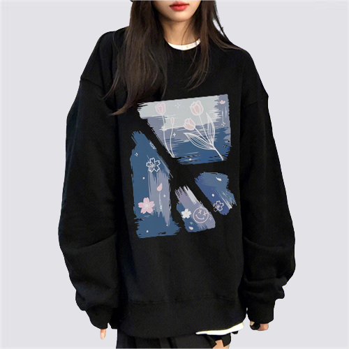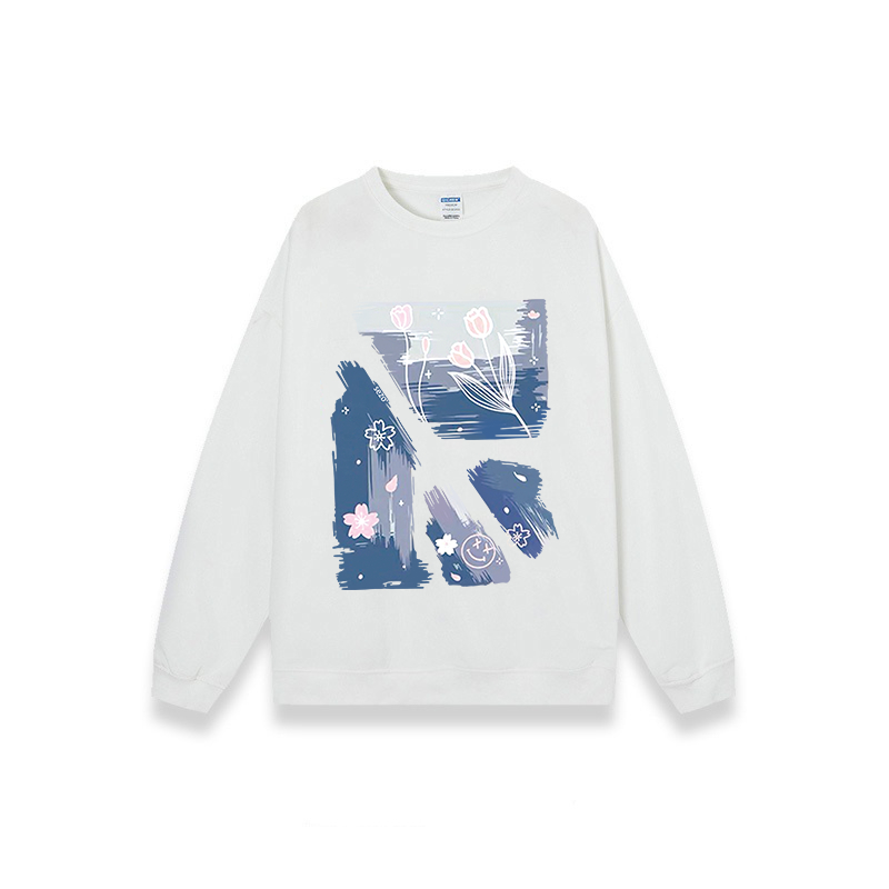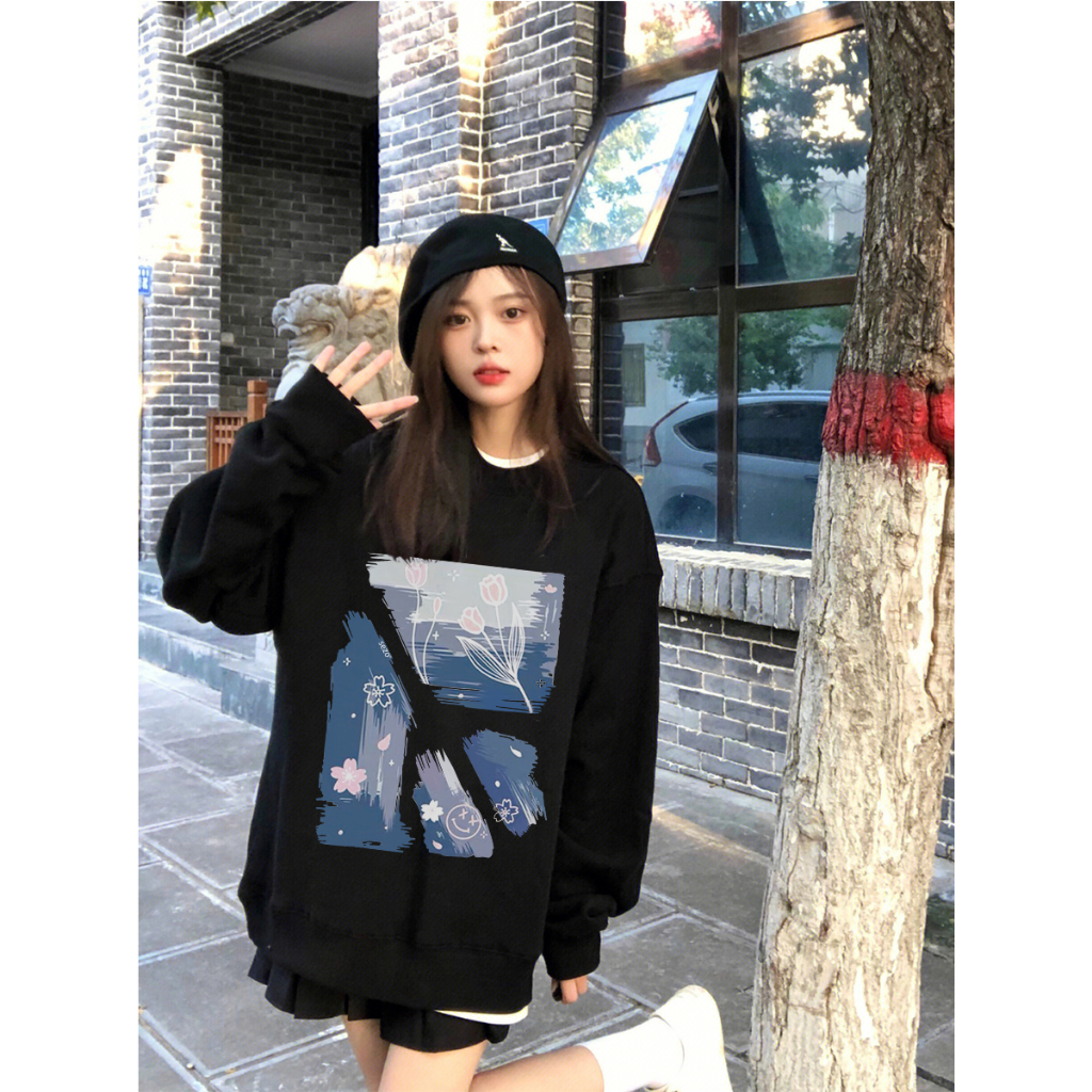 Detail XiaoZhaiNv Korean Style Blue Flower Graffiti Pattern Lengan Panjang Baju Sweater Wanita A0228