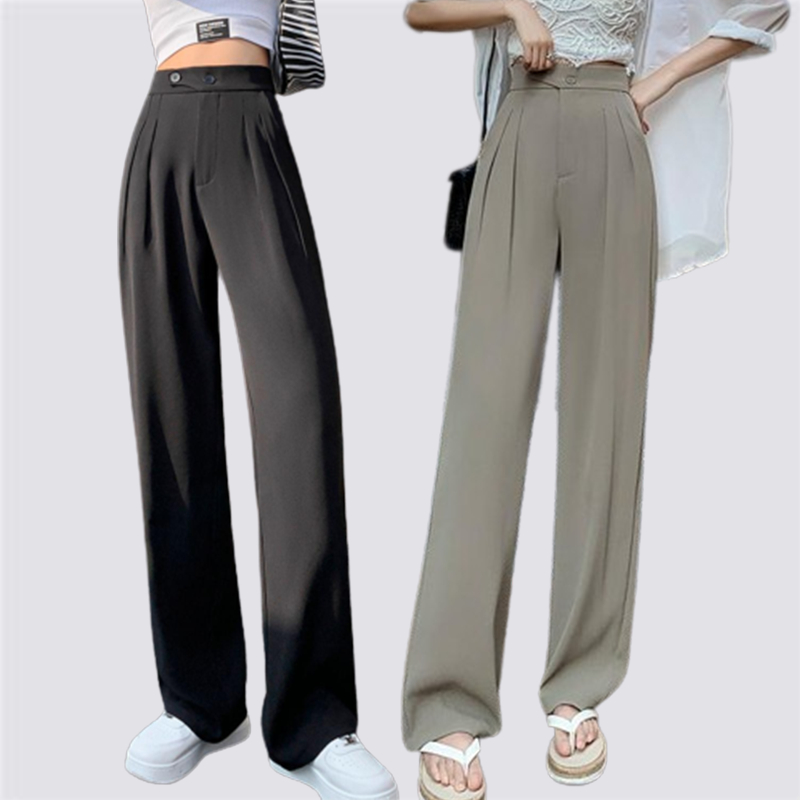 XIAOZHAINV Korean Style Celana Panjang Kulot Casual Wanita Highwaist Straight Pants 0804