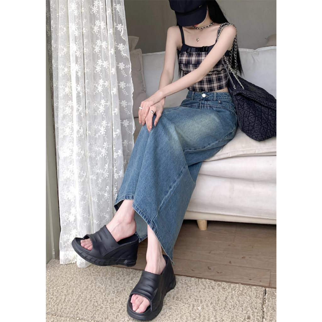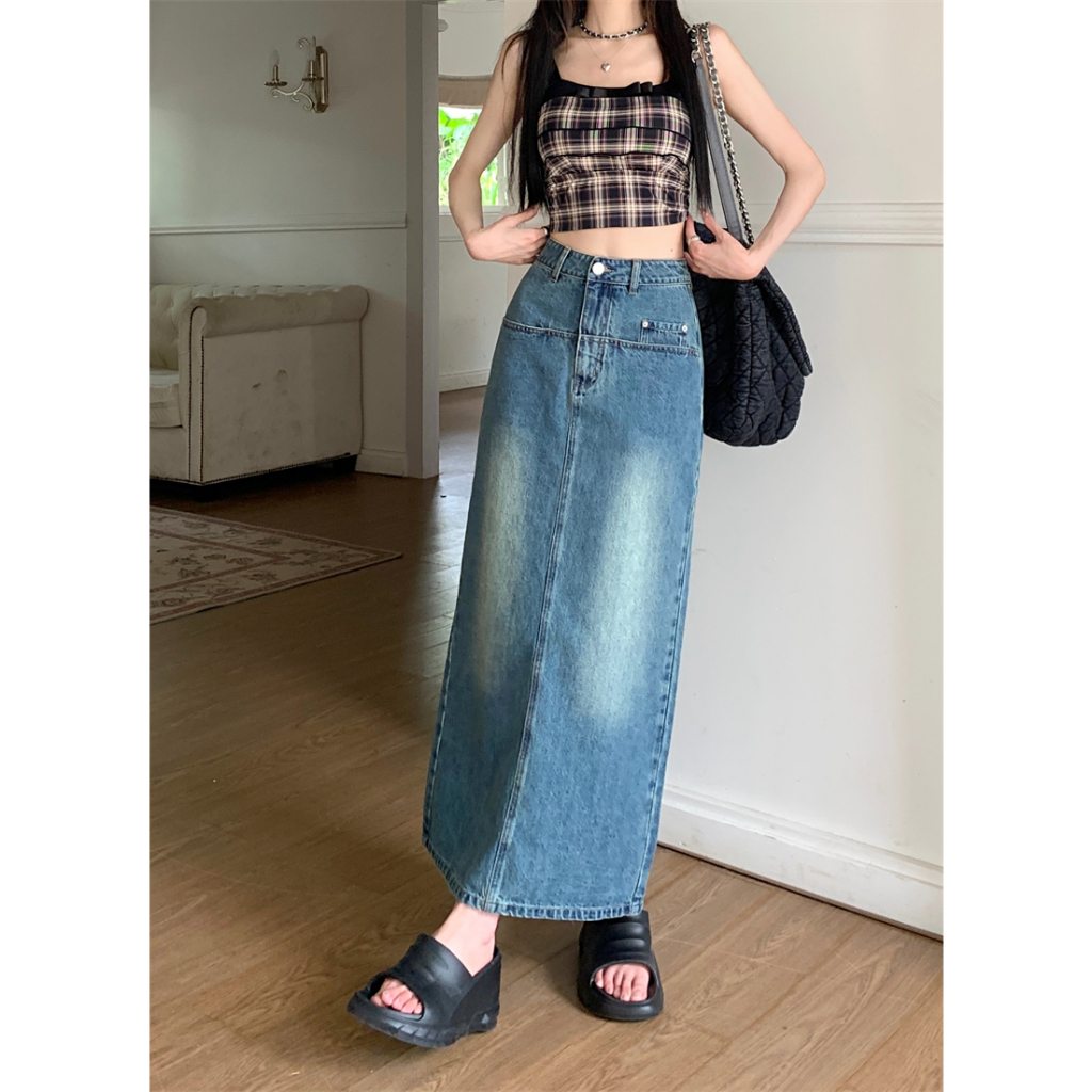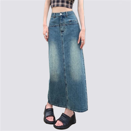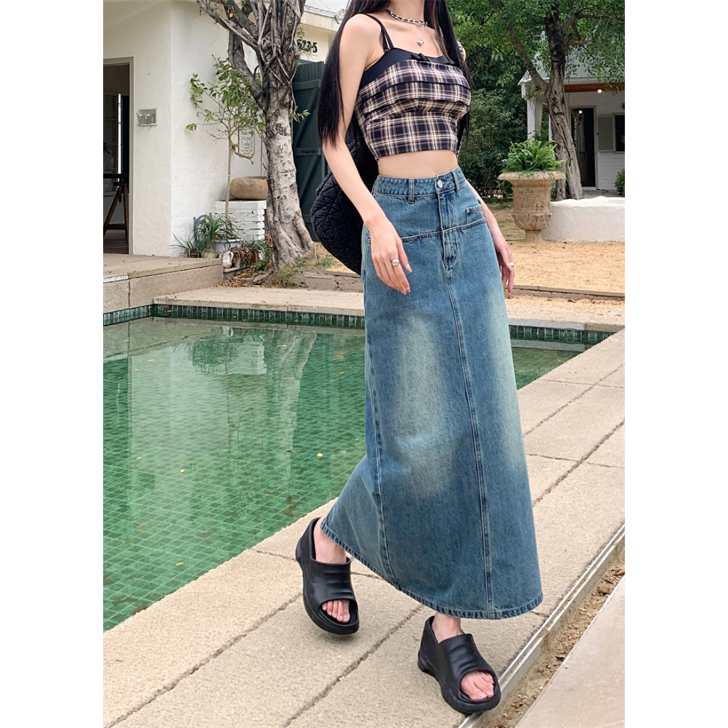 Detail XIAOZHAINV Korean Style Denim Rok Panjang Wanita Skirts Setengah High Waist Biru 0796