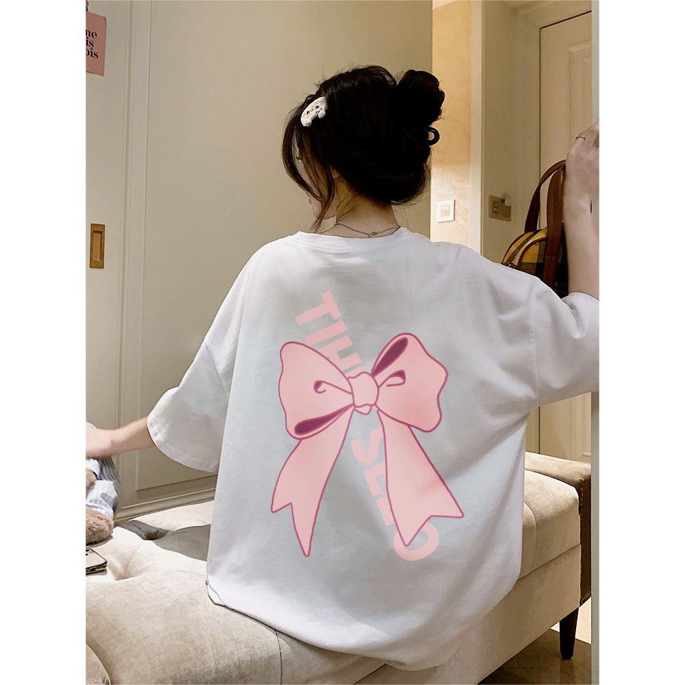 Detail XIAOZHAINV Korean Style Kaos Atasan Wanita Busur Merah Muda Pattern Lengan Pendek A0309